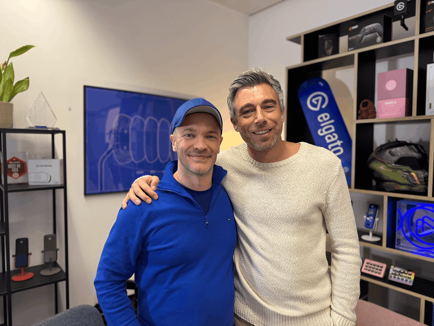 Von Karlsruhe ging es rüber ins schöne München, wo wir mit dem Team von Elgato zusammentrafen. Die Geschichte von Elgato ist total abgefahren: 1999 gegründet von einem Paar als Startup für TV-Karten, ist das Unternehmen heute einer der Top-Player im Markt für Streaming-Hardware – also Kameras, Mikros, Licht, das berühme Streamdeck und vieles mehr.